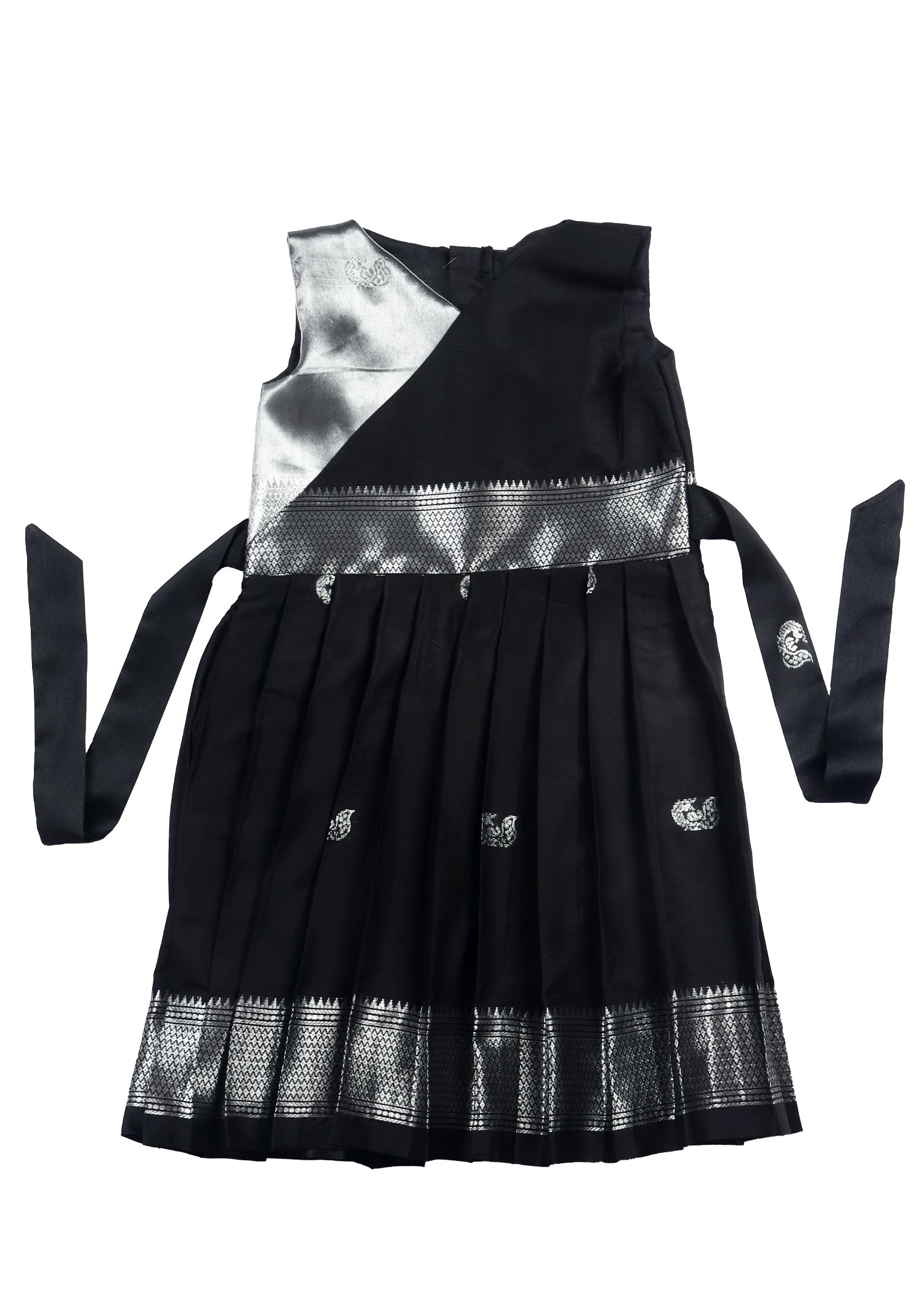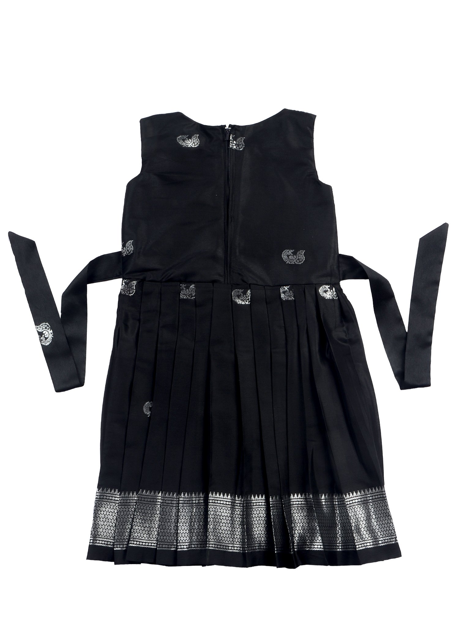 A beautifully crafted black frock with silver detailing and pleated design. This outfit is ideal for festive occasions, family gatherings, or special events. It is lightweight, comfortable, and stylish, made to give your baby a royal and elegant look.