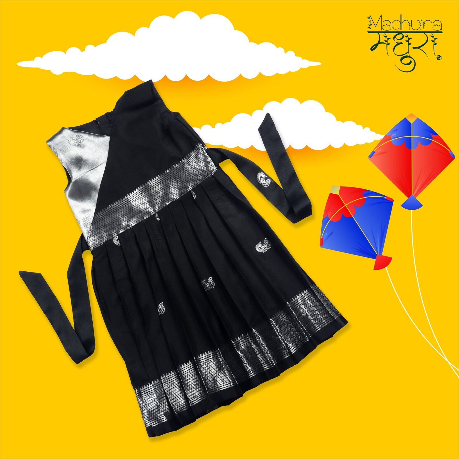Dress your little one in this black-red handmade frock for Makar Sankranti. Made from a saree, it’s a perfect mix of tradition and creativity.